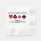 Bridge players of all ages understand the importance of following the convention card as filled out by a set of partners. No need to be a bridge director to enjoy this sound bridge advice paper napkin featuring the four card suits along with the following bridge saying: "Stamp Out Irregularities Follow Your Convention Card". Make others do a double-take at the bridge table with this bridge saying paper napkin at your next bridge-themed event!