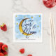 Os guardanapos do chá "Estamos sobre a Lua" apresentam um fundo de cor azul-d-água brilhante cheio de estrelas brilhantes de ouro e uma lua sombra reluzente de ouro.