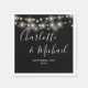 Com luzes bonito de cordas e nomes de estilo de assinatura, esses elegantes guardanapos pretos e brancos podem ser personalizados com seus detalhes de casamento em letra chic. Projetado por Thisnotme©