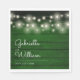 Um design rústico com luzes bonito de cordas e os nomes de casais felizes são colocados em um roteiro elegante acima de sua data especial em um fundo de painéis de madeira verde-esmeralda rústico. Perfeito para casamentos, noivados e comemorações de aniversário. Projetado por Thisnotme©