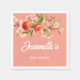 Enhance your table setting with these Sweet Peach Orchard baby shower napkins. The design features lush watercolor peaches and pink blossoms set against a warm coral background. These napkins are perfect for guests attending a fruit-themed garden party or summer celebration.