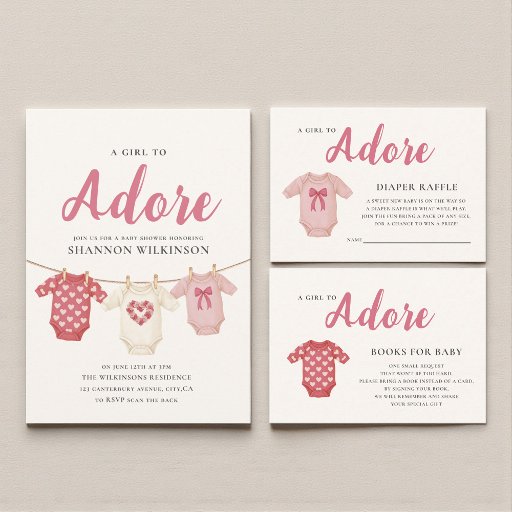 Celebrate the upcoming arrival of a precious baby girl with these adorable "A Girl to Adore" baby shower paper napkins. Featuring a charming pink vest adorned with a sweet pattern of white hearts, these napkins perfectly capture the joy and excitement of a baby shower. The elegant script font for "A Girl to Adore" adds a touch of sophistication, while the personalized text " mom to be Baby Shower" makes them a unique keepsake for the special occasion. These napkins are not only functional but also a delightful decorative element for your dessert or buffet tables, creating a cohesive and memorable theme for your celebration.