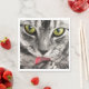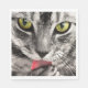 Este design apresenta uma imagem de alta definição de um gato-do-mato com cinzas e pelo preto e belos olhos verdes. Está a lamber com confiança a sua própria pata para se aliciar.