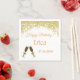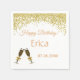Guardanapos ideais para uma comemoração de aniversário! Elegante borda de ouro, com copos de champanhe. Basta acrescentar o nome da pessoa de aniversário e a data de nascimento.