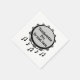 Vista frontal de um pandeiro preto-e-branco com texto alterável, que seria ideal para monograma. Notas musicais foram adicionadas ao fundo do instrumento musical.