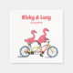 Este guardanapo personalizado divertido apresenta um par de flamingos cor-de-rosa a andar numa bicicleta tandem colorida, estilo Key West. O nome da noiva e do noivo está em cor-de-rosa flamingo, junto com a data do casamento. Altere ou personalize todo o texto simplesmente usando a guia para personalizar. Excelente para casamentos, chás de panela, aniversários ou qualquer evento para um casal divertido. Projetado para combinar outros itens tão felizes juntos.