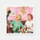 Senhoras que se reúnem para o chá da tarde, estilo do ano 50. Uma trabalho de arte de 1950 que capta como era o chá da tarde num passado não muito distante.