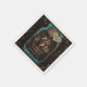 Rustic teal wedding paper napkins featuring a mason jar and burlap hearts on a barn wood background.