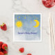 Os guardanapos perfeitos para o chá de fraldas dos gêmeos! O sol e a lua se complementam. Fundo azul escuro e sol dourado, lua e estrelas. Texto personalizável