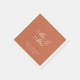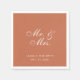 Guardanapos de casamento para um casamento com a cor de casamento terracota. Apenas texto branco no fundo marrom terracota. As palavras "Sr. & Sra." são escritas em um script caligráfico elegante, os nomes da noiva e do noivo e a data em letras maiúsculas menores.