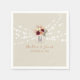 Fraldas de casamento elegantes, modernas, rústicas e beige creme, com lindas flores de cor-de-água burgundy em monograma de jarro, luzes de cordas e roteiro de caligrafia.