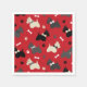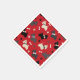 Cães escoceses, cinzas e cães escoceses que vestem arcos, com pegadas e ossos de cães em fundo vermelho.