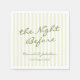 Set the tone for your special night with this timeless and sophisticated wedding 'The night before' napkin set, featuring soft sage green vertical stripes and a casual handwritten typography. The delicate color palette creates a fresh, romantic feel, perfect for an outdoor summer venue.
