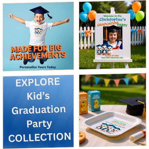 Celebrate a special preschool graduation party with this cute geese graduation design. Easily edit the text details. Create a coordinated preschool graduation party with matching decorations and stationery featuring this lovable goose graduate artwork.
