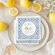 Celebre a noiva com guardanapos de papel temáticos "La Dolce Vita" modernos, apresentando padrões de azulejos mediterrâneos elegantes em azul, branco e amarelo com ilustrações de gelato de limão cítrico, lembrando um verão doce e romântico no sul da Itália. Sinta-se à vontade para me enviar uma mensagem se precisar de ajuda com a personalização.