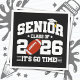 Este desenho do time de futebol da turma de formandos de 2026 é perfeito para estudantes do último ano do ensino médio ou graduados universitários. Ótimo para os jogadores de futebol da turma de formandos que estão celebrando sua última temporada de futebol antes da formatura em 2026! Apresenta a citação "Turma de formandos de 2026 - É hora de ir!" em uma fonte atlética estilo varsity com um gráfico de um boné de formatura e uma bola de futebol com borla para o orgulhoso jogador de futebol da turma de formandos de 2026. Ótimo para os jogos de futebol da turma de formandos de 2026 durante todo o ano letivo!