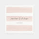 Estes guardanapos apresentam um padrão de listras pintado em rosa-claro sobre fundo branco com elegante e simples tipografia. Personalize com os nomes da noiva e do noivo e uma data de casamento.