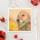 Adicione um pouco de torcida para sua próxima festa com esses bonitinhos guardanapos de papel! A design apresenta uma fotografia de um cão que recupera o ouro que está a segurar uma flor amarela na boca. Perfeito para qualquer ocasião.