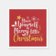 Tenha um Natal Feliz em uma letra decorativa de escrita cursiva em branco e ouro amarelo. Embelado com uma estrela, flocos de neve, holly e um galho de agulhas verdes. Colocado num vermelho quente muito saturado.