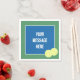 Adicione o toque perfeito de finalização às festas de aniversário com tema de tênis e eventos especiais com estes guardanapos de papel com a sua própria mensagem personalizada. As letras brancas em angústia indicam sua mensagem contra um fundo azul, branco e verde do tênis com dois sotaques amarelos de tênis.