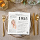 Diga feliz aniversário a alguém nascer em 1955 com esses guardanapos únicos do estilo Newspaper, incluindo uma coleção de fatos divertidos e notícias do mundo desde o ano de seu nascimento. Projetado para se assemelhar a um jornal vintage com texto preto e branco, ele é facilmente personalizado com uma foto do convidado de honra e seu nome. Comemore os anos 50 em estilo único.