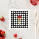Os guardanapos do coquetel Derby apresentam um troféu dourado cheio de rosas vermelhas em um fundo de cheque preto e branco com seus nomes e data em letra chic.