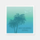 Add a cool tropical touch to your table with these aqua blue paper napkins designed by Destei. Two blue palm tree silhouettes rise against a soothing aqua gradient sky, while three birds fly across the sky. Perfect for birthdays, beach parties and summer celebrations, these napkins bring a tropical vibe to any occasion.