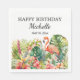 Os guardanapos de papel "Feliz Aniversário" femininos com um belo flamingo rosa sobre folhas tropicais e fundo floral. Personalize com o nome do convidado de honra. Entre em contato comigo para obter assistência com suas personalizações ou para solicitar outros produtos Zazzle correspondentes ou coordenadores para sua celebração.