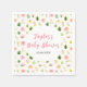 This beautiful and elegant napkin features watercolor pink and orange hibiscus flowers and foliage. The text combines handwritten script and serif fonts for a stylish and modern look. This is perfect for a summer tropical baby shower.