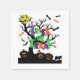 Estes guardanapos exibem as palavras "Trick Or Tratat" em uma fonte impressão única com letras roxas, verdes e laranja com valete de lateralmente, morcegos ou outros decalques temáticos assustadores neste tema e estilo do Halloween. Estilos de guardanapo cunhados ou standard disponíveis vendidos em quantidades de 50 medidas 4,75" l x 4,75" w (dobrados) impressas em cor de cheio.