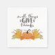 Em todas as coisas dão obrigados Uma boa celebração é tanto sobre a apresentação quanto sobre a comida. Sirva a festa com guardanapos de papel personalizados que parecem bem guardados na coleira ou enfiados sobre o seu colo.