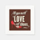 Um design divertido de um estilo poster que diz que tudo que você precisa é de amor e calçados. As palavras estão em uma fonte agradável e então há um calçado vermelho no canto esquerdo. Tudo que você precisa é de amor e calçado de design parece excelente. Perfeito para si mesmo ou como presente