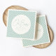 Querida! Este adorável guardanapo chá de fraldas apresenta uma borda verde de gingham teal e um texto personalizado doce. As áreas de texto podem incluir nome ou nomes pai, chá de fraldas, data e muito mais. É perfeito para um chá de fraldas neutro em termos de gênero e também pode funcionar bem para um batismo também! Este design de guardanapo bonitinho coordena-se com a coleção de gingham Design de Lea Delaveris, onde você pode encontrar mais mantimentos de festas de gingham verde e decoração e outras cores também.