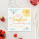 Um pequeno raio de sol está a caminho! Aproveite sua comida chá de fraldas, desertos e guloseimas com esses bonitos guardanapos. Design mostra um sol, nuvens e balões!