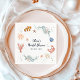 Make your bridal shower extra fun and memorable with these whimsical "She is a Catch" paper napkins! Adorable watercolor under-the-sea illustrations—including a smiling lobster, cute crabs, clownfish, tropical fish, starfish, coral, waves, and bubbles in soft pastel colors—frame the playful pun "She is a Catch" along with personalized text: "[Bride's Name]'s Bridal Shower" and date.