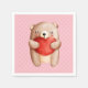 Abrigos de papel com uma ilustração de aquarela fofa. Um ursinho castanho carregando um grande coração vermelho. Bolinhas amarelas claras em fundo rosa.