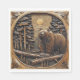 Guardanapos de papel com aparência de madeira talhada rústica com um urso em pé em uma floresta de pinheiros sob a lua cheia.