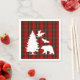 Um design elegante para o inverno com fundo de tartã vermelho, preto, verde e animais de floresta e árvore!