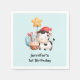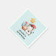 Napôs de papel com uma imagem adorável apresentando uma vaca sorridente, com um balão de estrela dourada e um pouco de bolo e um presente.