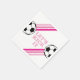Vamos Chute! Guardanapos de aniversário de futebol com listras rosa e bola de futebol.