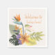 Os guardanapos tropicais para personalizar ou não, o buquê também é uma imagem nítida em um fundo de piscar de seixo para fins de visualização, mas qual cor você pode facilmente mudar. Estes guardanapos têm coordenadas para a festas de papel, decoradas com Birds-of-Paradise, Anthurium, uma flor de lavanda profunda não identificada, e folhas largas tropicais contrastantes
