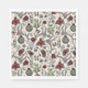 Estes guardanapos de papel natalino festivos apresentam um padrão ocidental, desenhado à mão, com crânios e galhadas de renas, rosas vermelhas, plantas de cacto e poinsetos a tinta preta contra um fundo elegante de creme, capturando o espírito do Natal.