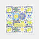 Summer Sicilian Amalfi Mediterranean majolica Napkins. O padrão floral botânico de jardim de citros inspirado pela brilhante arte temática italiana do verão da majolica. Lindos azulejos de cerâmica sicilianos em amarelo rosa e azul. Um design brilhante estilo divertido para decoração doméstica, roupas, móveis e Capas de ipad, convites e muito mais. Você pode alterar todas as cores e fontes do texto, clicar para personalizar ainda mais abaixo da área de personalização do texto que o levará à ferramenta design. Um presente único para aniversários, feriados e qualquer ocasião especial. Seja para dia de os namorados, Natal ou como um presente em geral, faz uma ideia de presente excelente