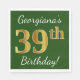 Guardanapo De Papel Verde, Faux Dourado 39º Aniversário + Nome Persona