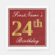 Este simples e elegante design de guardanapo de papel apresenta uma mensagem como "24.º Aniversário do Primeiro Nome" (com o "24.º" a ter uma coloração falsa em ouro) dentro de uma área quadrada de cor vermelha com um contorno de fronteira simples. O nome está em um texto semelhante a script de cor branca e pode ser personalizado. Napkins como estes poderia talvez ser usado numa festa de aniversário para alguém que comemora seu vigésimo quarto aniversário. [~Z0000138]