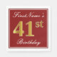 Este simples e elegante design de guardanapo de papel apresenta uma mensagem como "Parto de 41ruas do Primeiro Nome" (com a "41ruas" com uma falsa coloração em ouro) dentro de uma área quadrada de cor vermelha com um contorno de fronteira simples. O nome está em um texto semelhante a script de cor branca e pode ser personalizado. Napkins como estes poderia talvez ser usado numa festa de aniversário para alguém que comemora seus quarenta anos de primeiro ano. [~Z0000138]