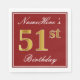 Este simples e elegante design de guardanapo de papel apresenta uma mensagem como "NameHere's 51rua Birthday" (com a "51ruas" com uma falsa coloração em forma de ouro) dentro de uma área quadrada de cor vermelha com um contorno simples de fronteira. O nome está em um texto semelhante a script de cor branca e pode ser personalizado. Napkins como estes poderia talvez ser usado numa festa de aniversário para alguém que comemora seus cinquenta anos de primeiro ano. [~Z0000138]