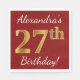 Guardanapo De Papel Vermelho, Faux Dourado 27º Aniversário + Nome Pers