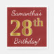 Este simples design de guardanapo de papel apresenta uma mensagem como "28º Aniversário de Samantha!", com o "28º" a ter uma aparência falsa de ouro, num fundo de cor vermelha. O nome pode ser personalizado. Pode ser usado numa festa de aniversário para alguém que comemora seu vigésimo oitavo aniversário. [~Z0000080]