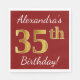 Guardanapo De Papel Vermelho, Faux Dourado 35º Aniversário + Nome Pers